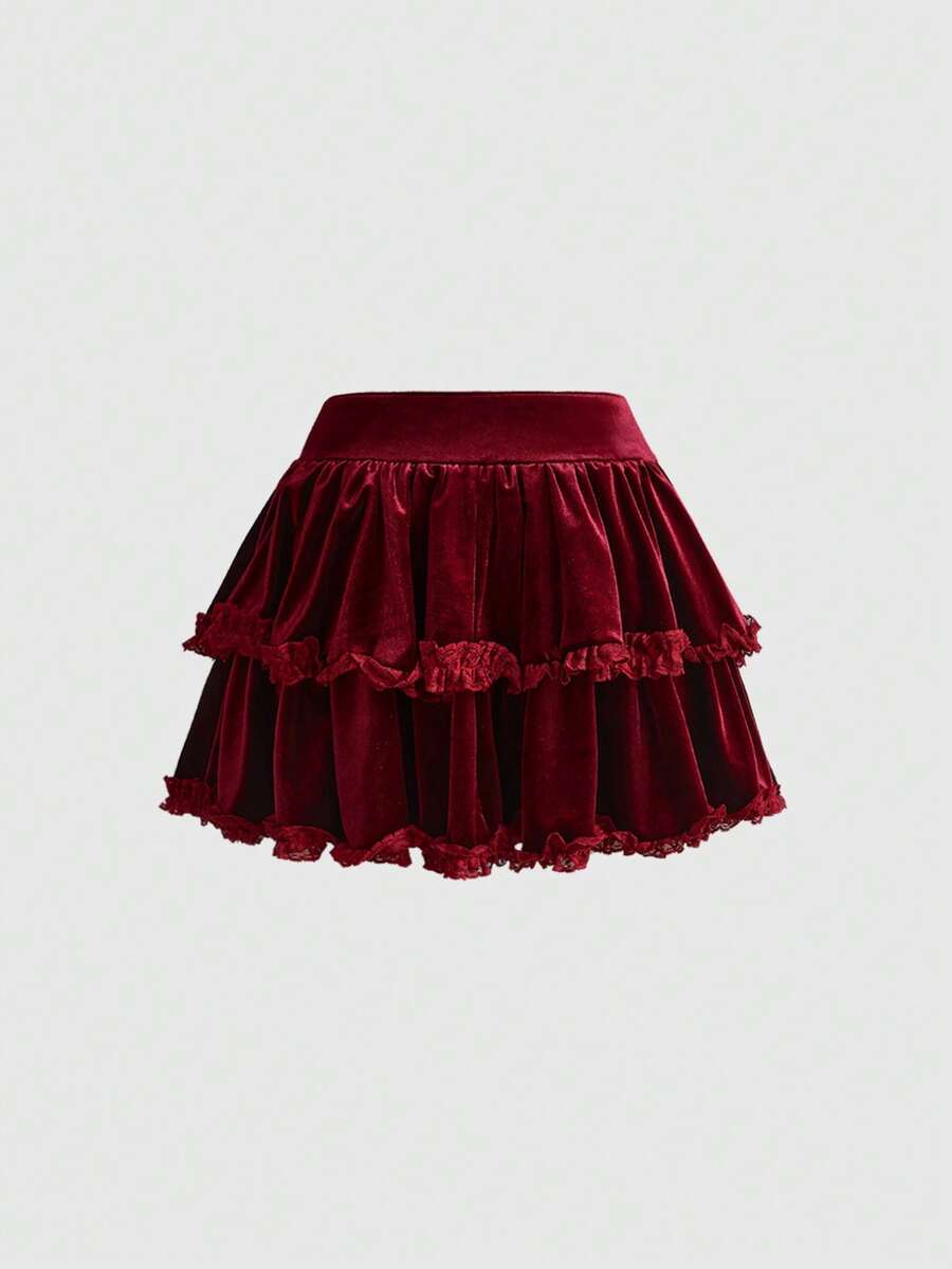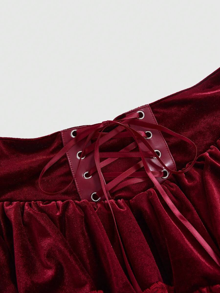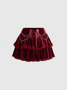 Jupe mini gothique romantique vintage en velours avec chaîne en croix