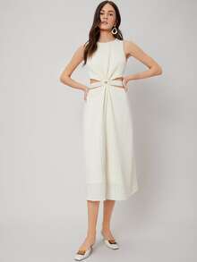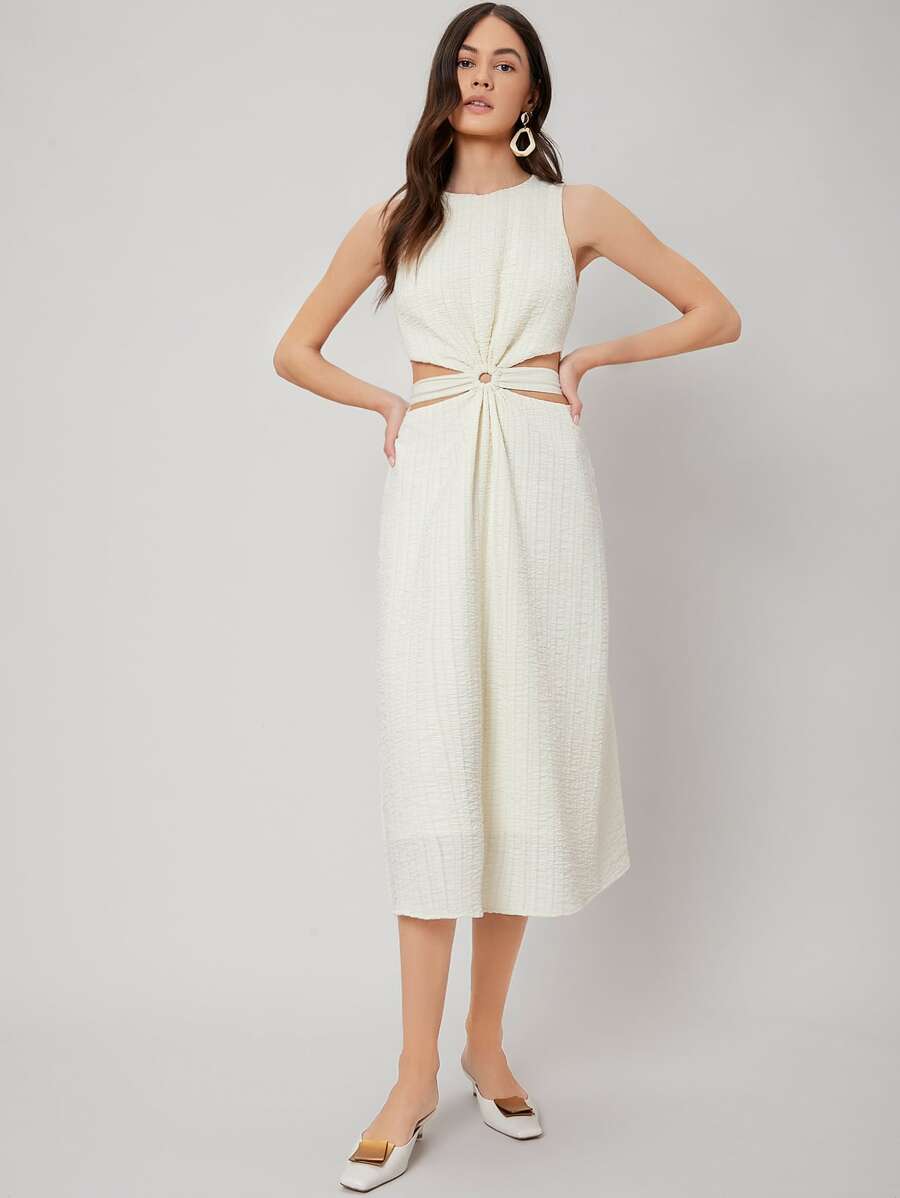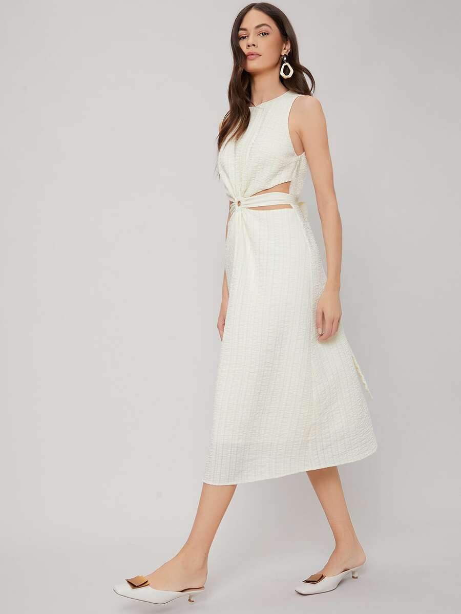 Robe mi-longue texturée en viscose