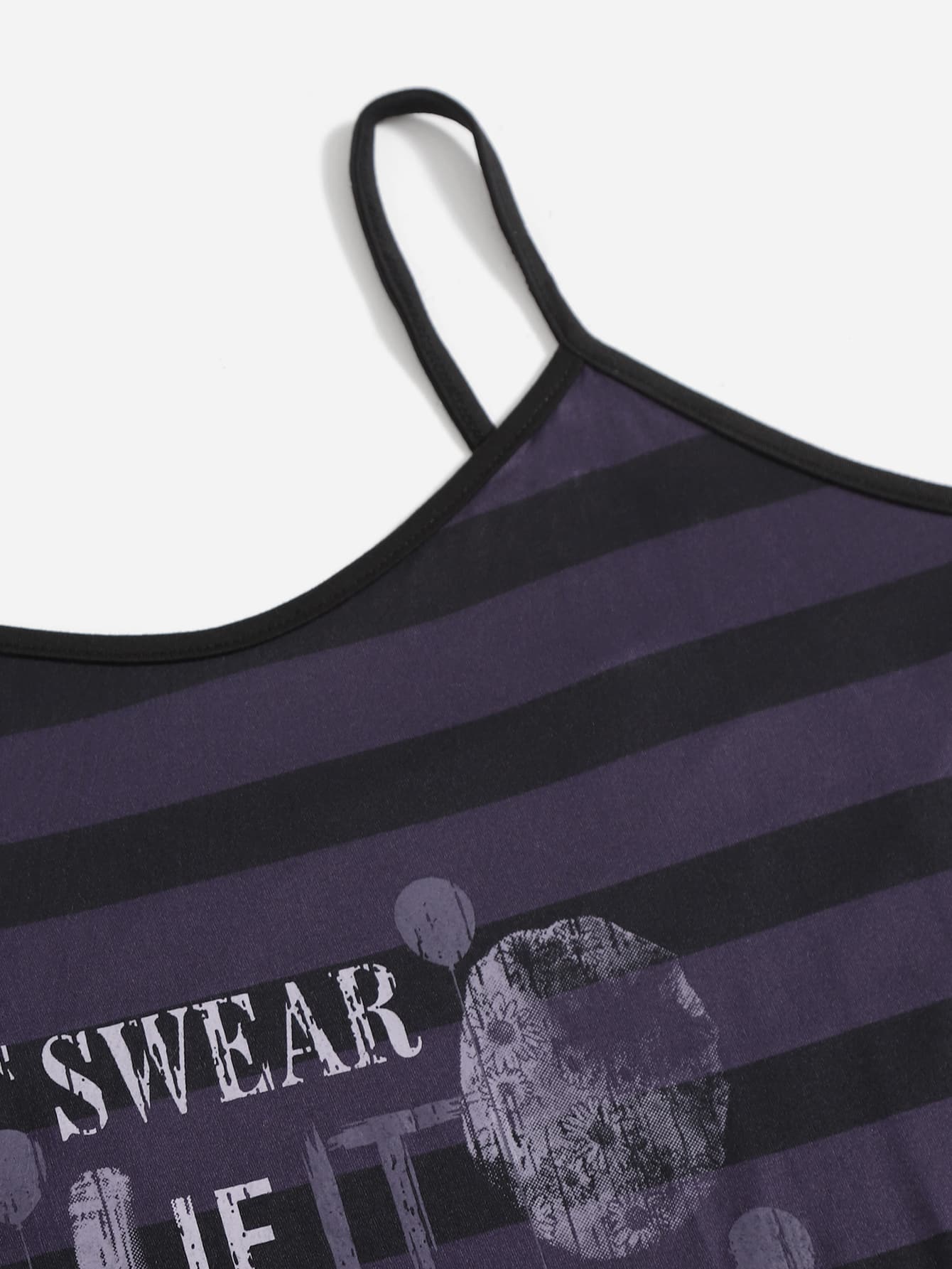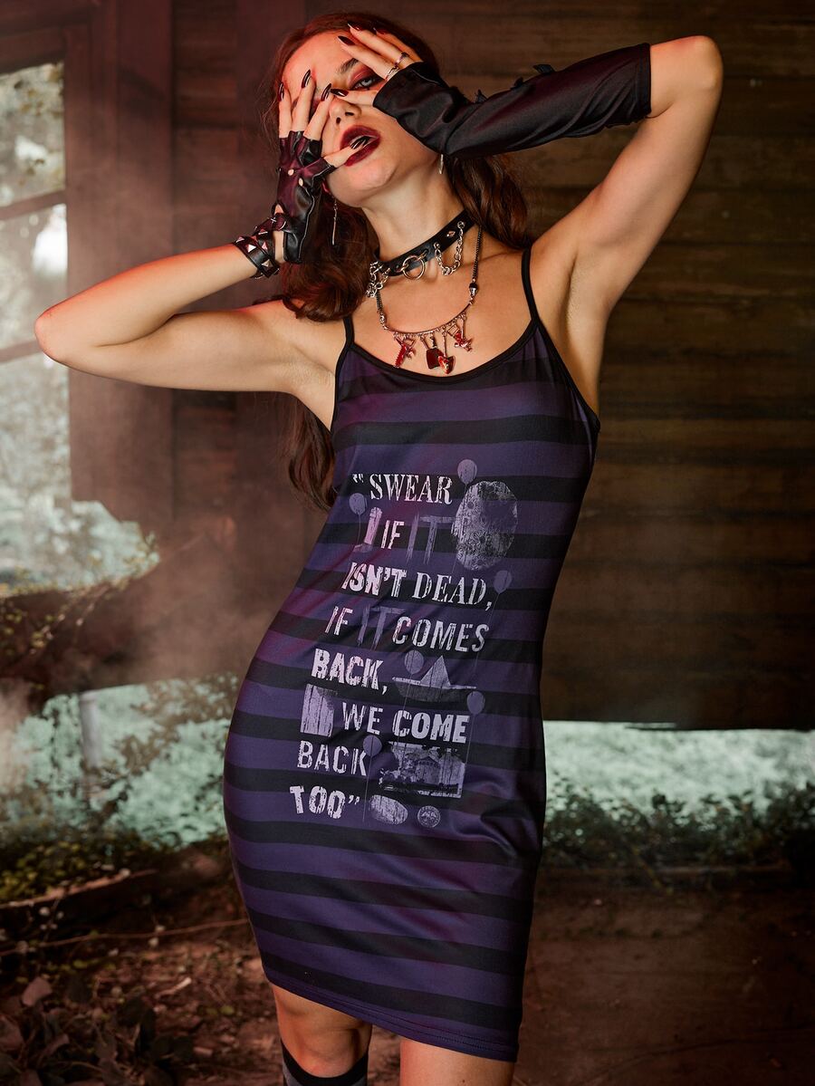 WB Horror | ROMWE Robe à fines brides à rayures graphique de slogan