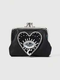 1pc Gothic Style Blue Eye & Red Heart Beaded Pu Leather Short Wallet For Women