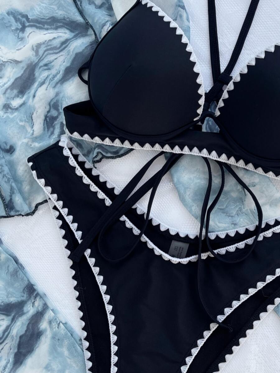 Ensemble bikini d'été avec surpiqûres croisées pour la plage