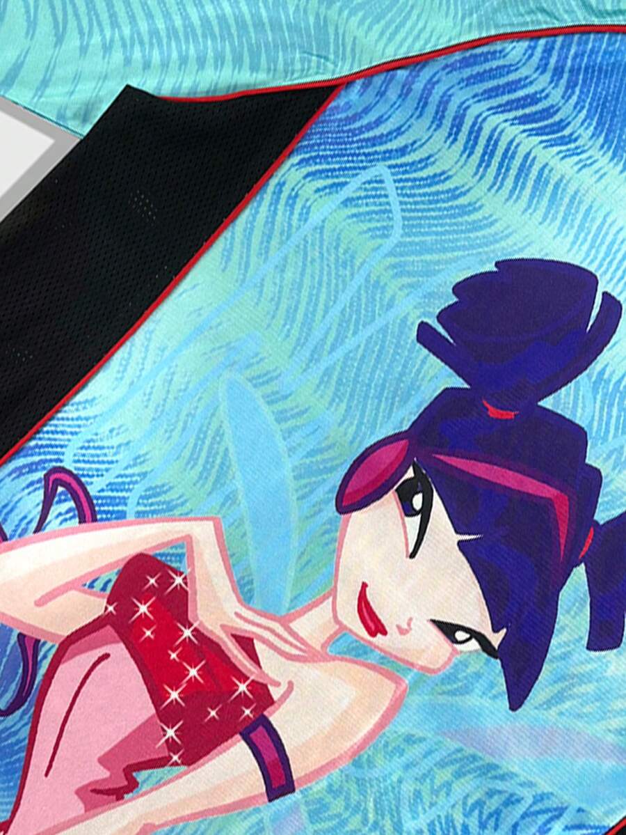Winx Club X ROMWE T-shirt manche jersey à blocs de couleurs avec graphique de personnage de bande dessinée casual street sport, pour hommes, été