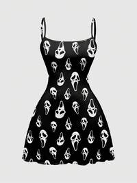 Robe moulante gothique, mystérieuse et sombre avec imprimé fantôme sexy à fines bretelles, grande taille