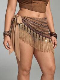 Jupe cache-maillot à franges scintillantes transparentes, style rétro hippie, pour festival de musique western, pour femmes grandes tailles