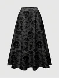 Jupe plissée gothique mystérieuse à imprimé crâne et épines en 3 couches pour femmes