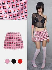 Jupe mini taille basse pour femmes avec patchwork de dentelle jacquard gothique et maille pour la Saint-Valentin