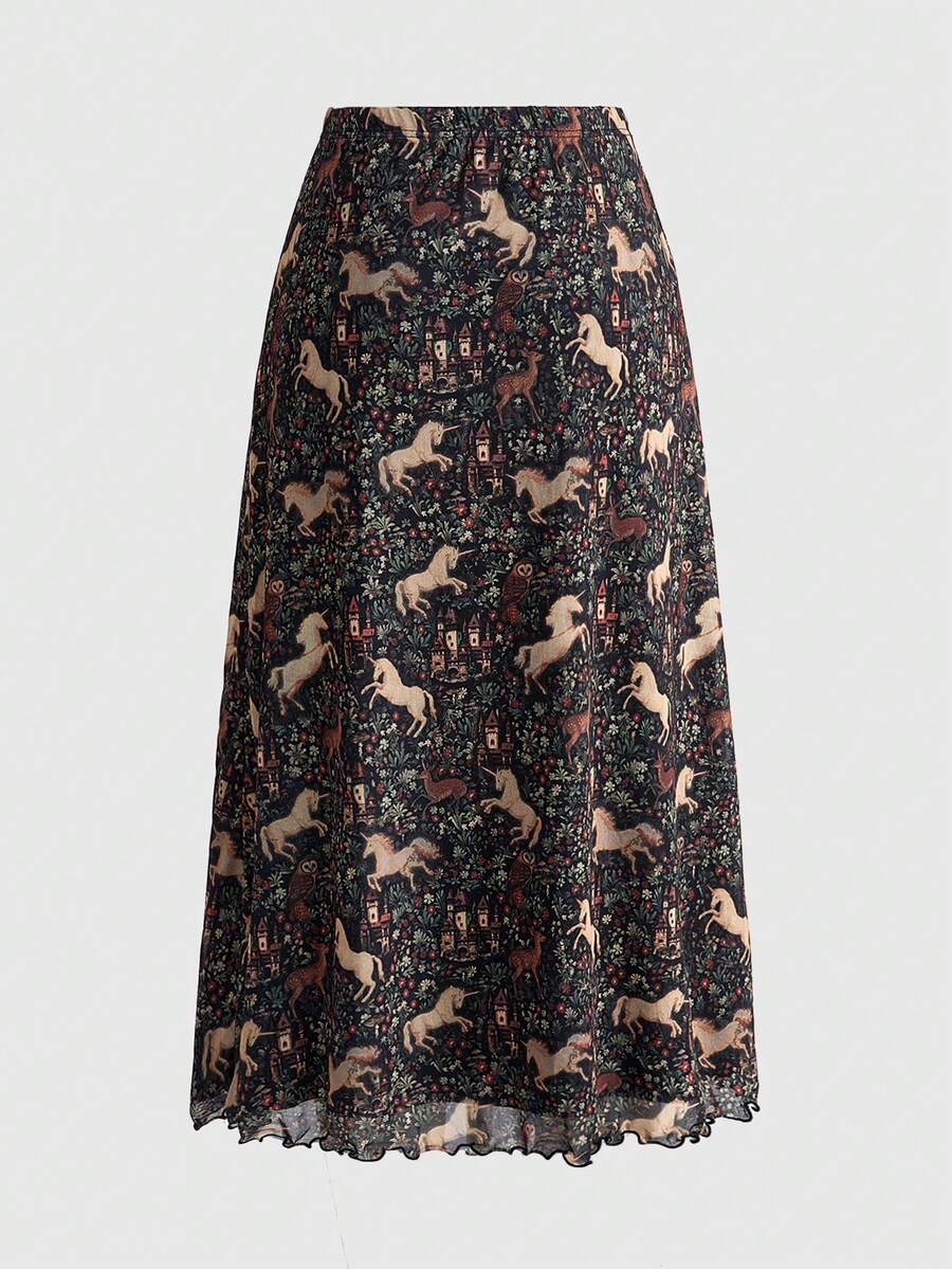 Fairycore Jupe évasée punk gothique sombre pour femmes avec imprimé de chauve-souris, crâne, lune et citrouille