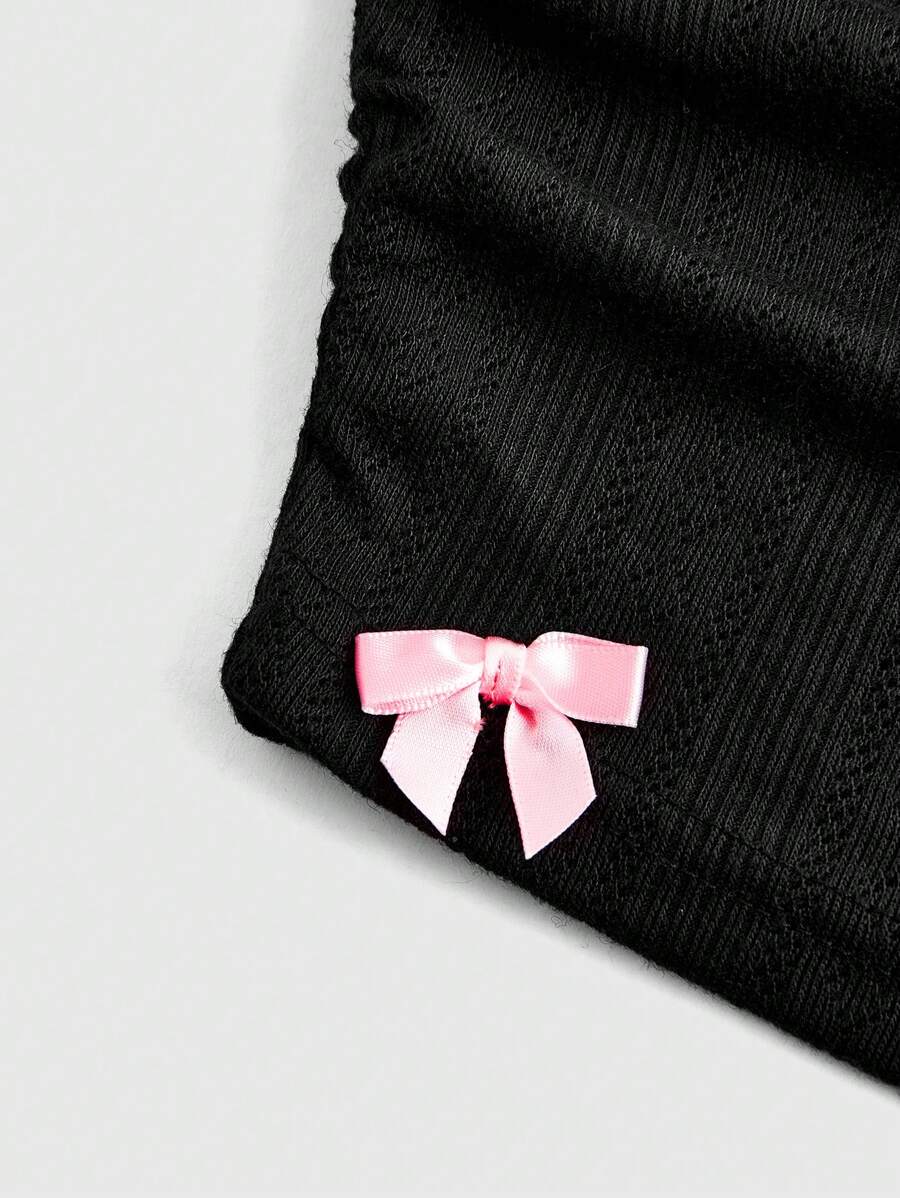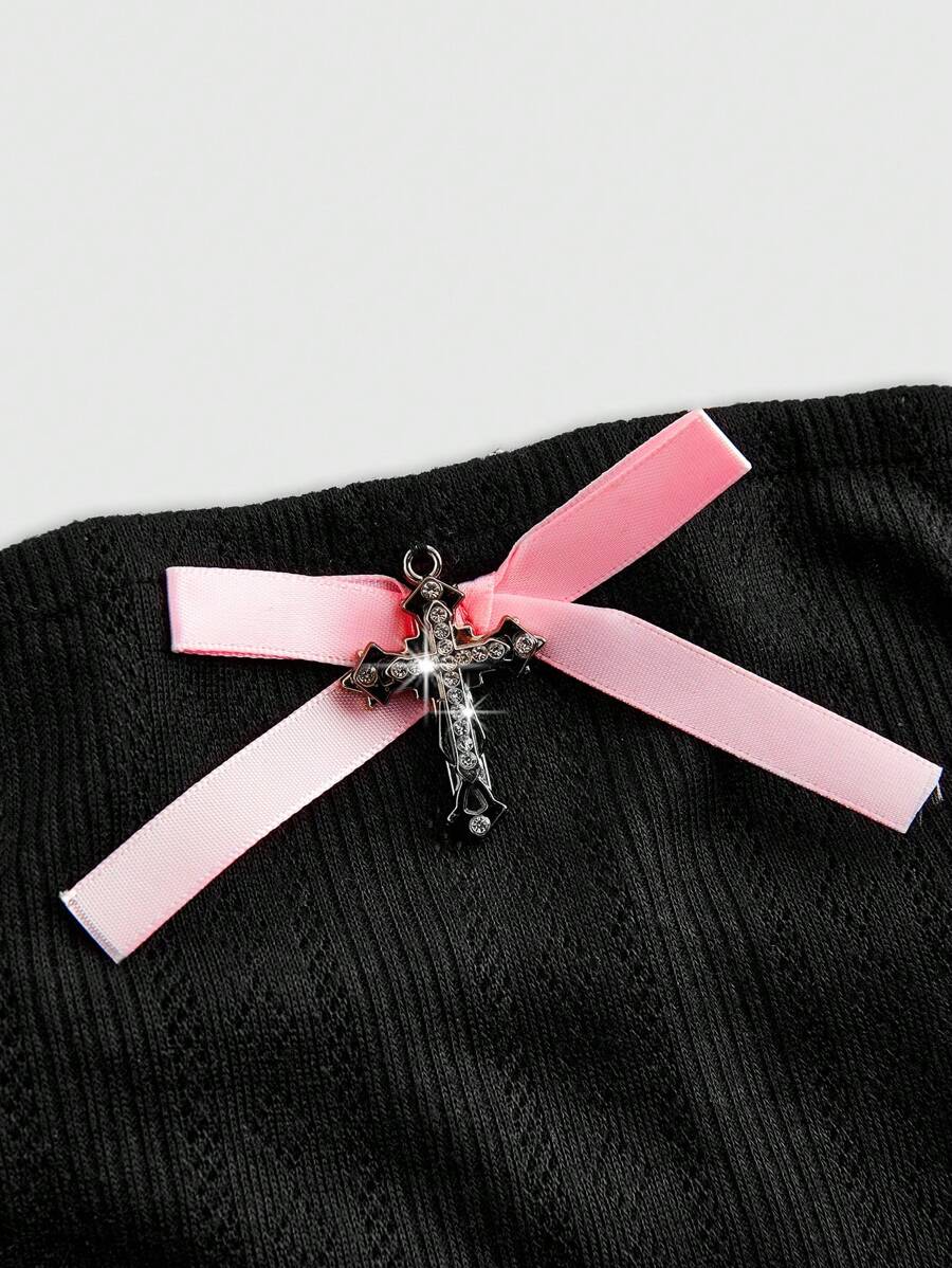 Kawaii Haut Épaules Nues Femmes Avec Jolie Décoration De Nœud, Tissu Texturé Croisé Métallique Et Froncé