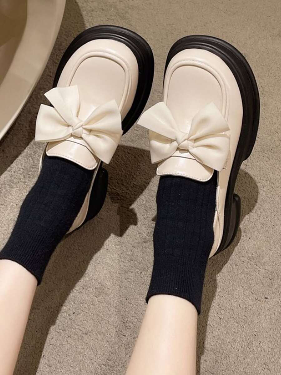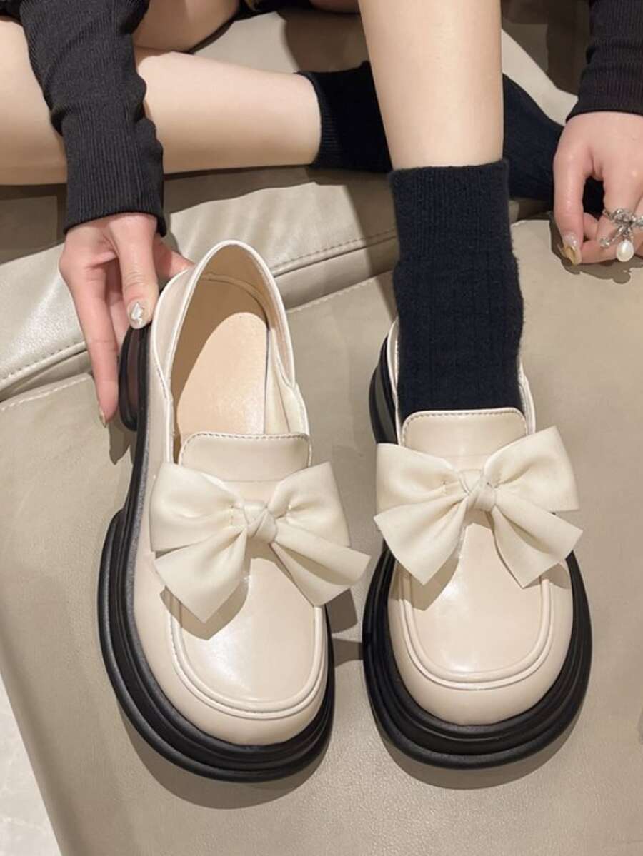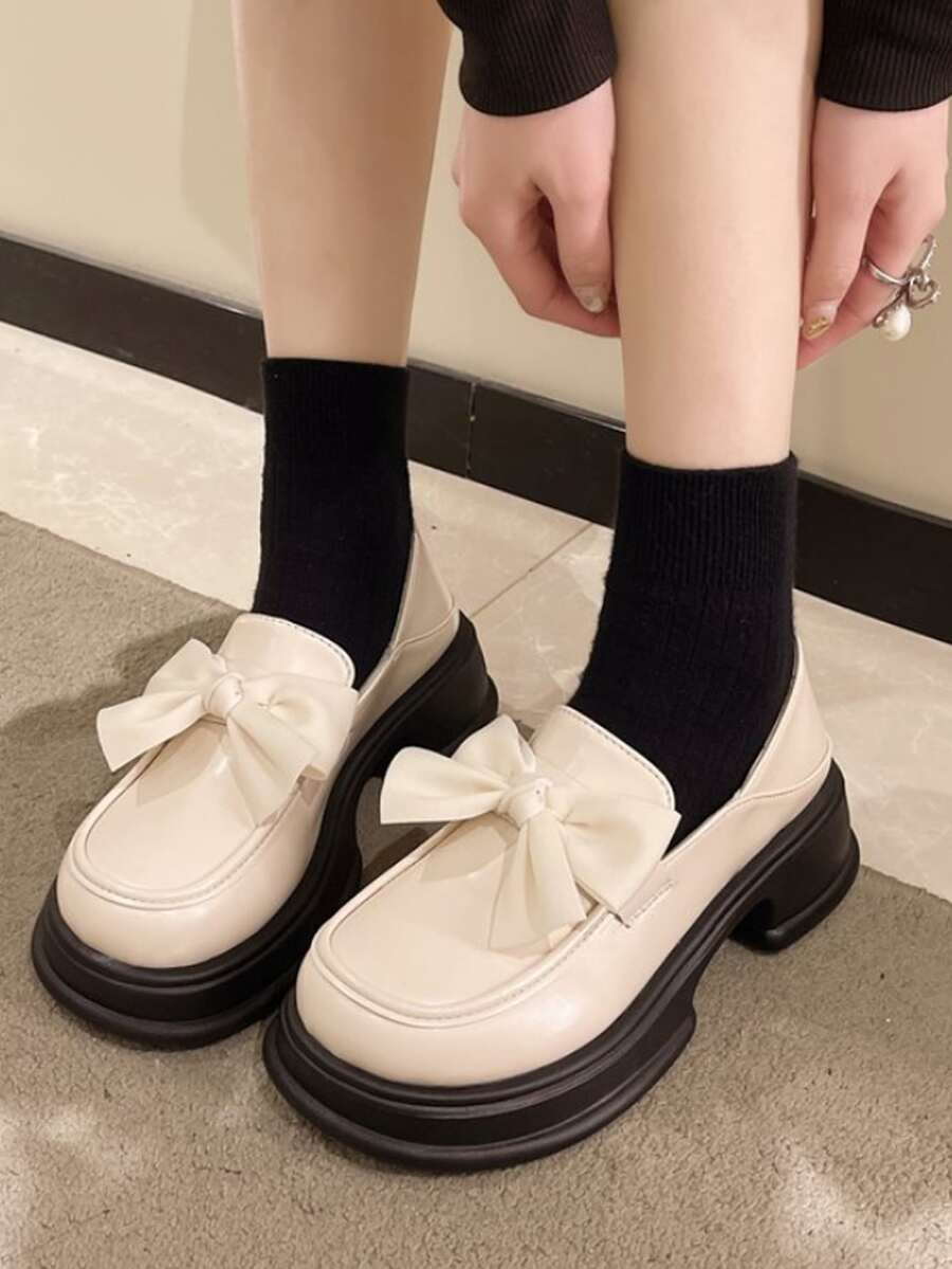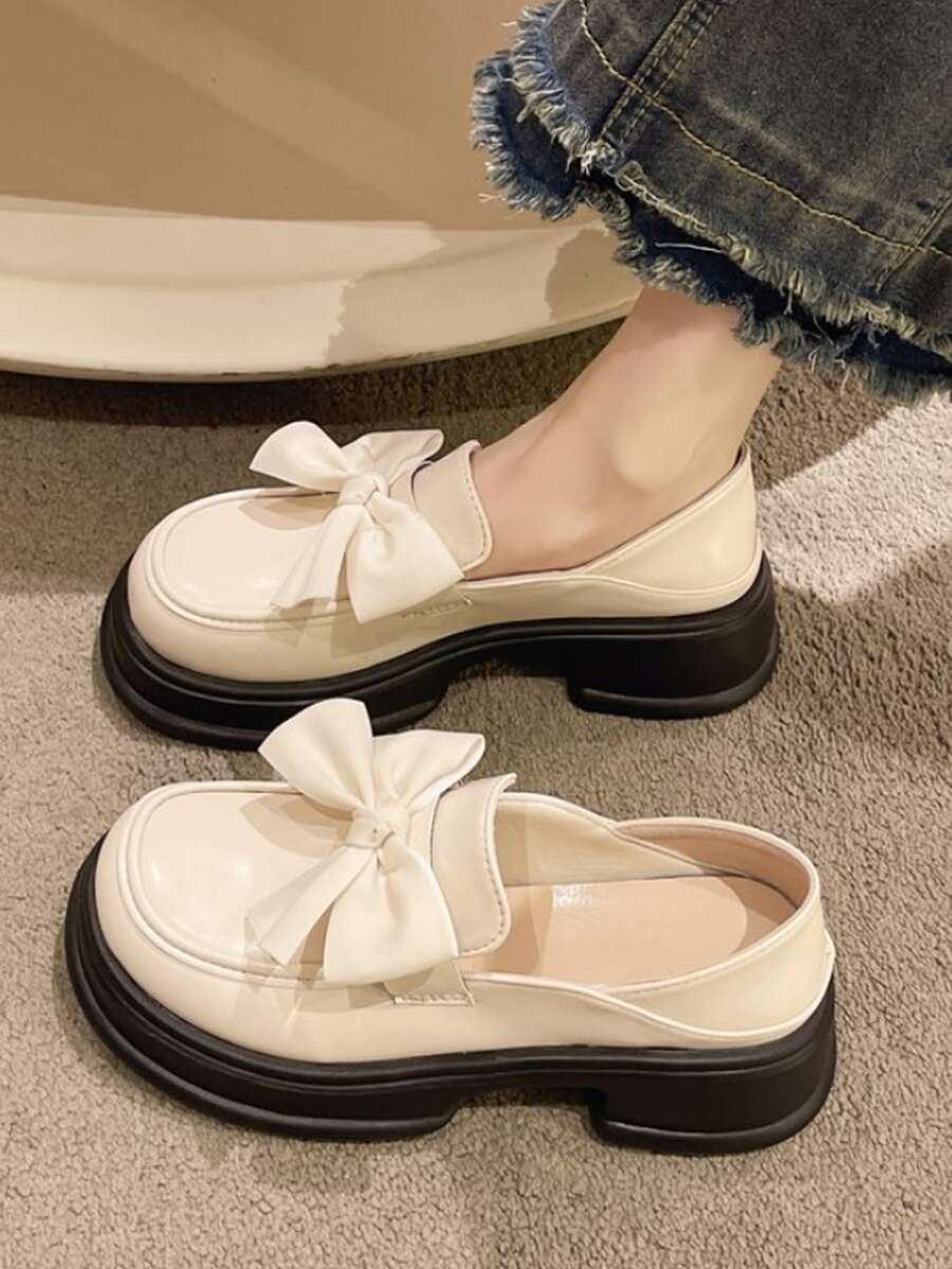 Femme À Nœud Papillon Mocassins Glissants Preppy Plate-Forme Chaussures beige