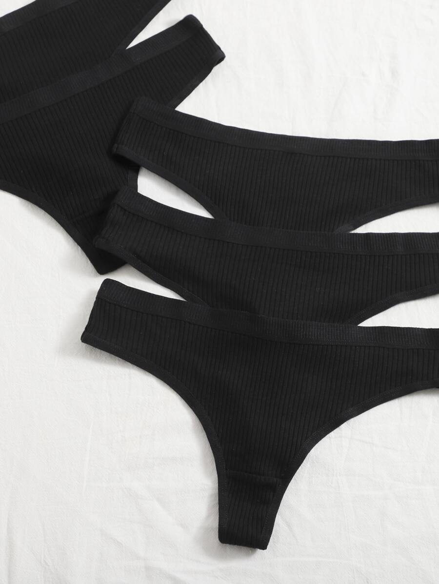 5 paquets de culottes tanga noires en tissu confortables et simples pour un port quotidien, stretch moyen