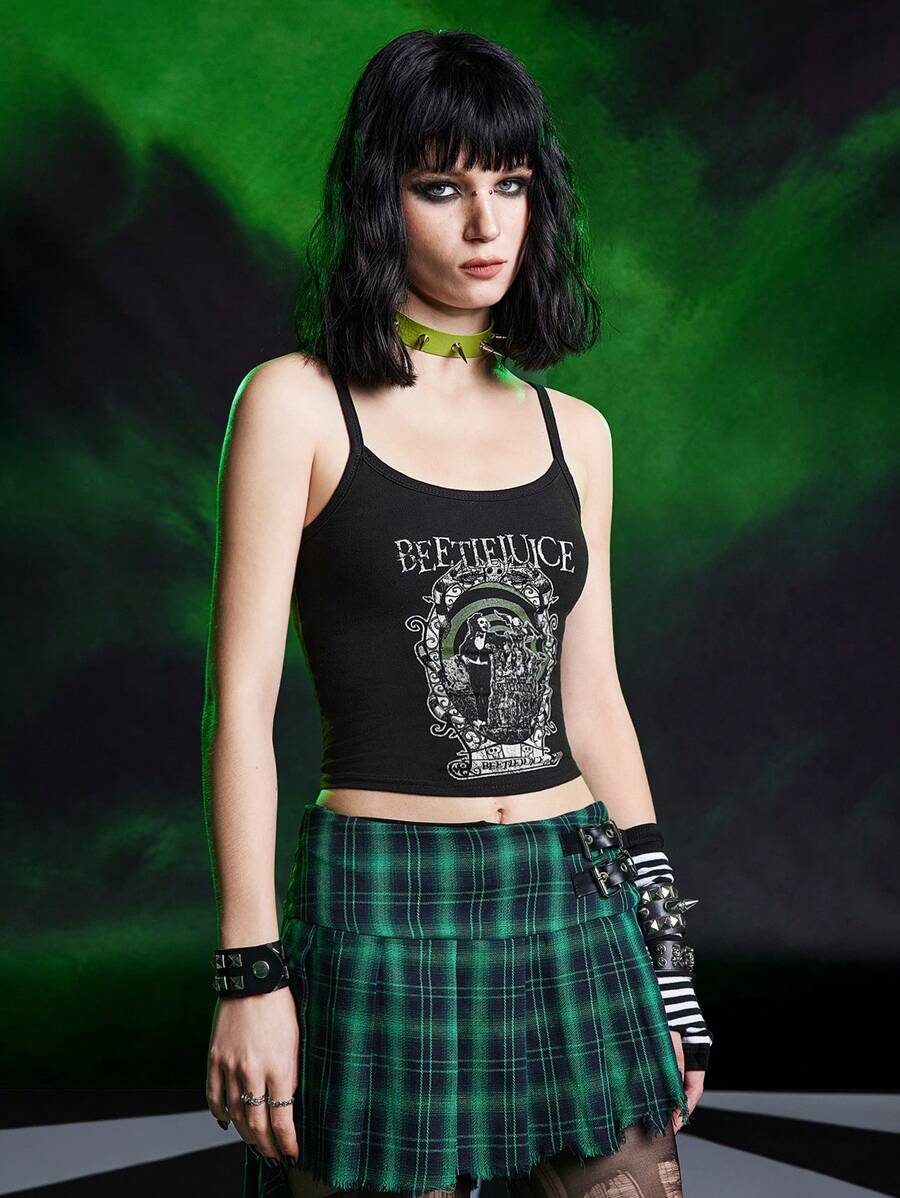 Beetlejuice | ROMWE Débardeur coupe slim court avec imprimé de silhouette féminine et lettres, style décontracté pour l'été