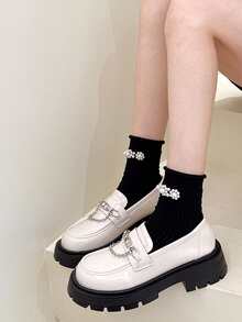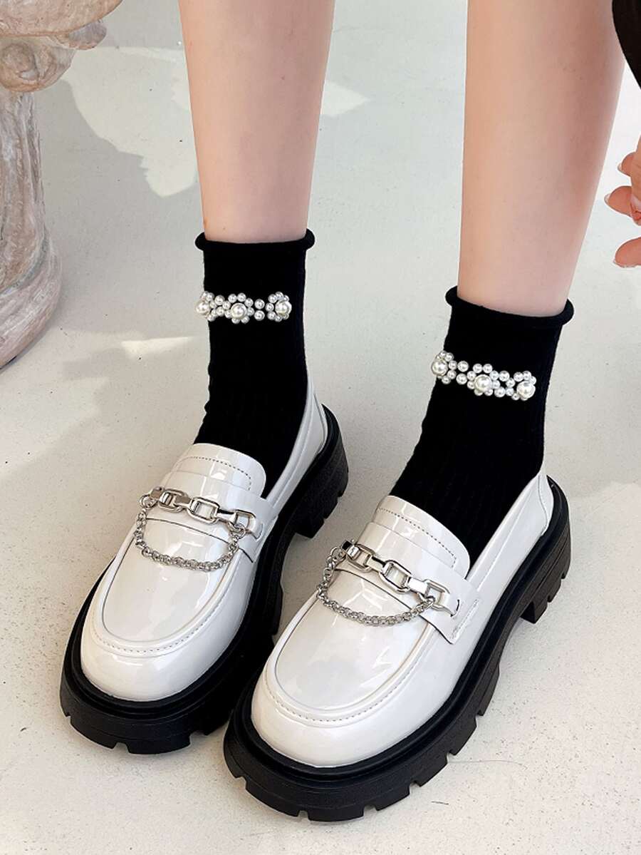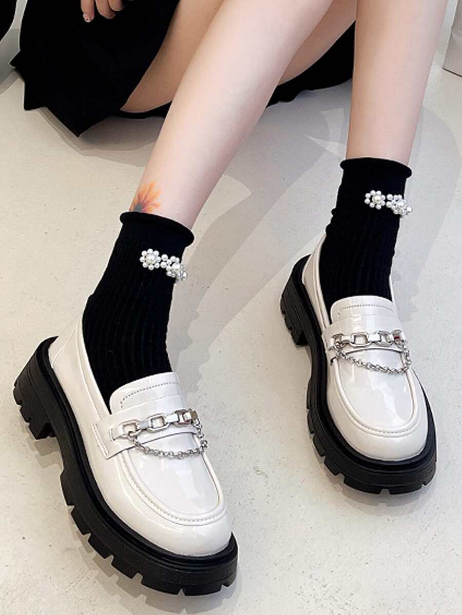 Femme À Chaîne À Plate-Forme Chaussures Mode Blanc Mocassins