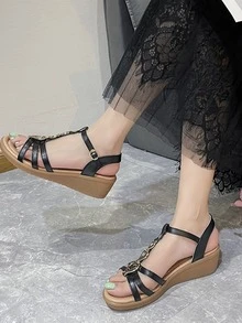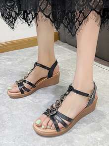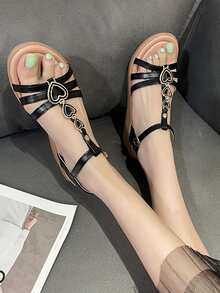 Sandales compensées à détail cœur à bride de cheville à la mode noir