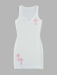 ROMWE Avant Robe mini en satin imprimée avec croix d'ange pour femmes