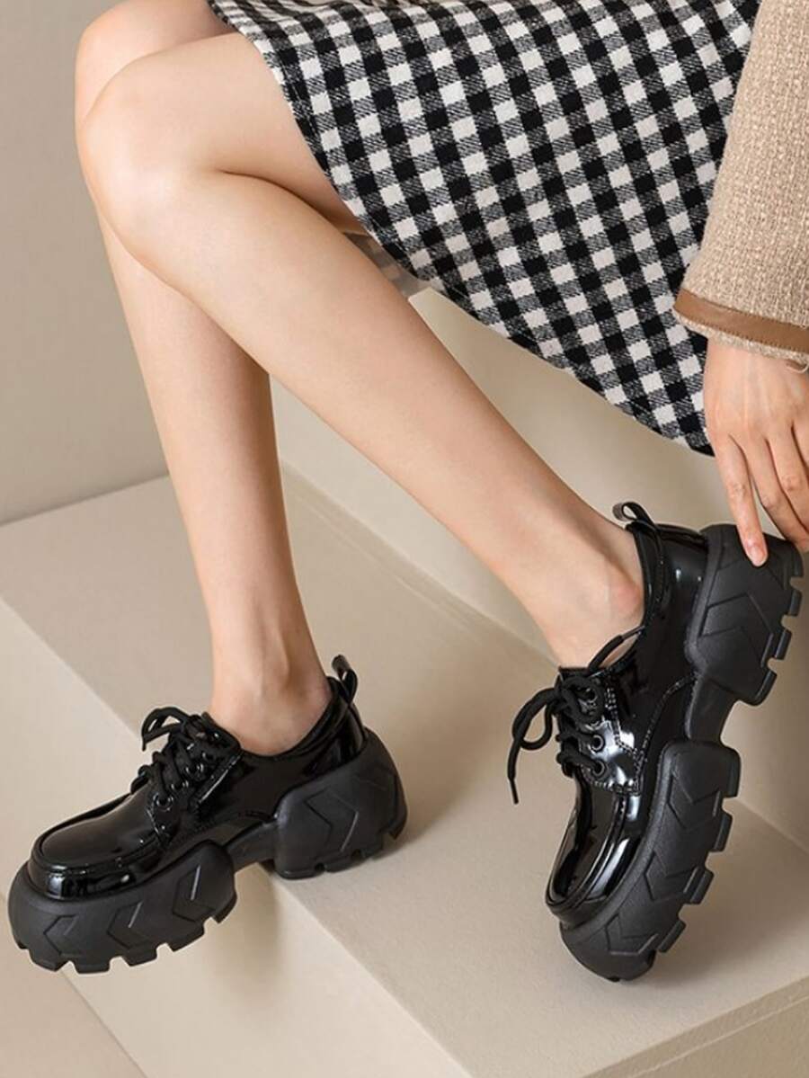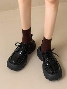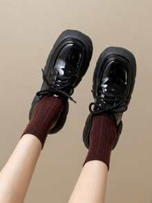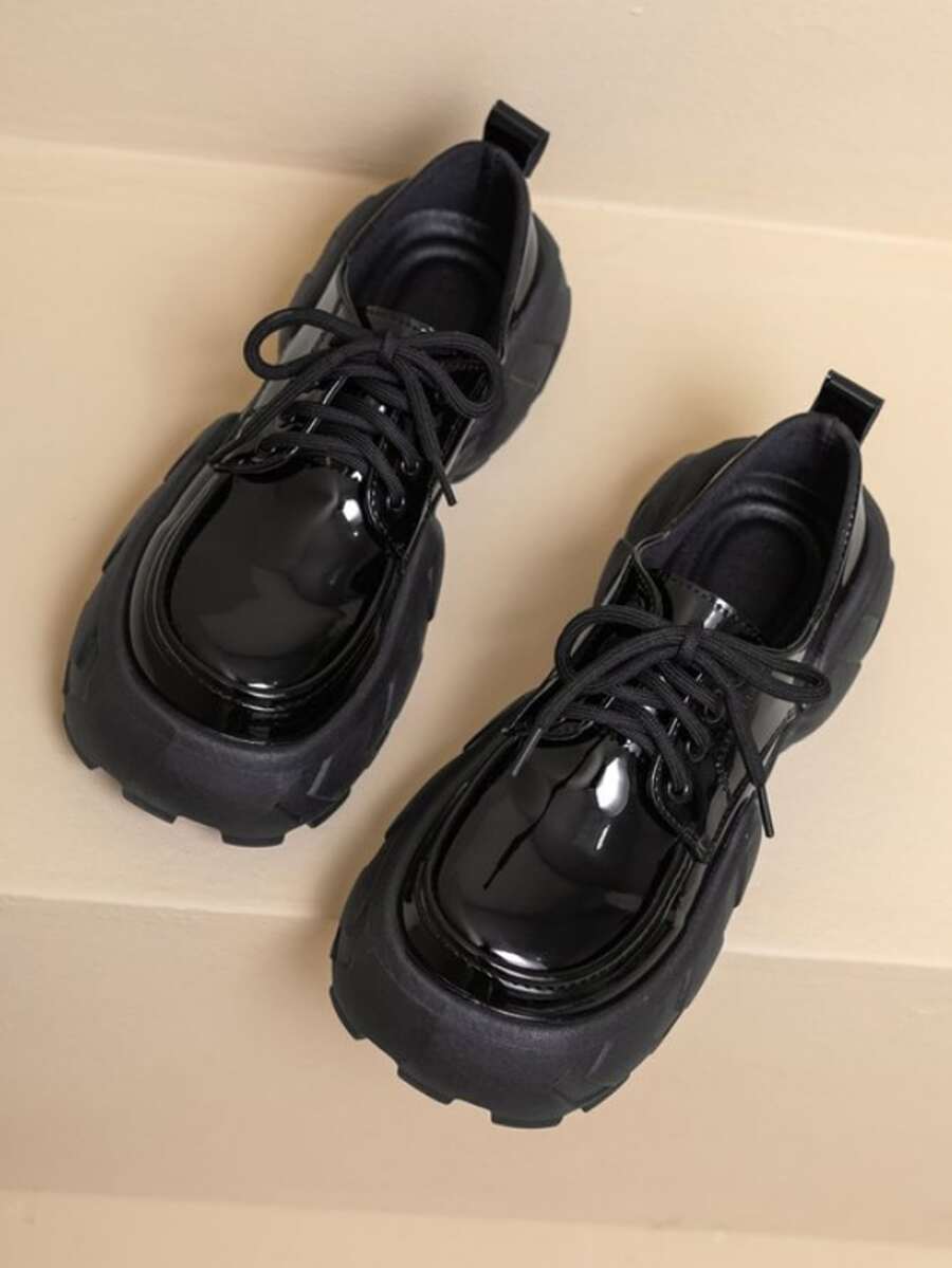 Femme Chaussures Oxford À Lacets Mode Plate-Forme Chaussures Noir