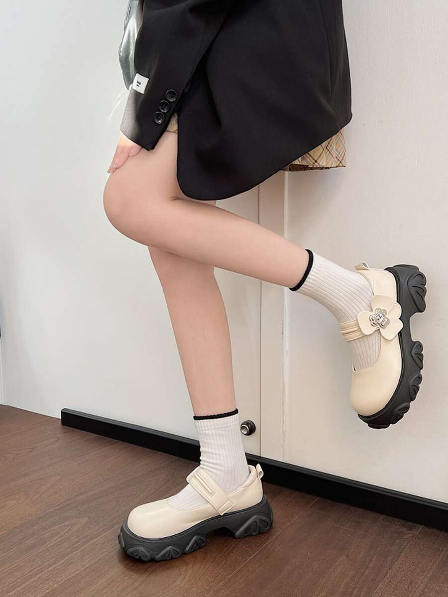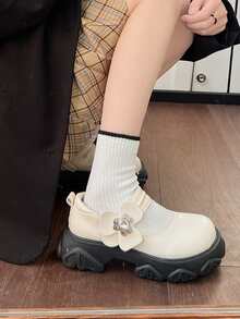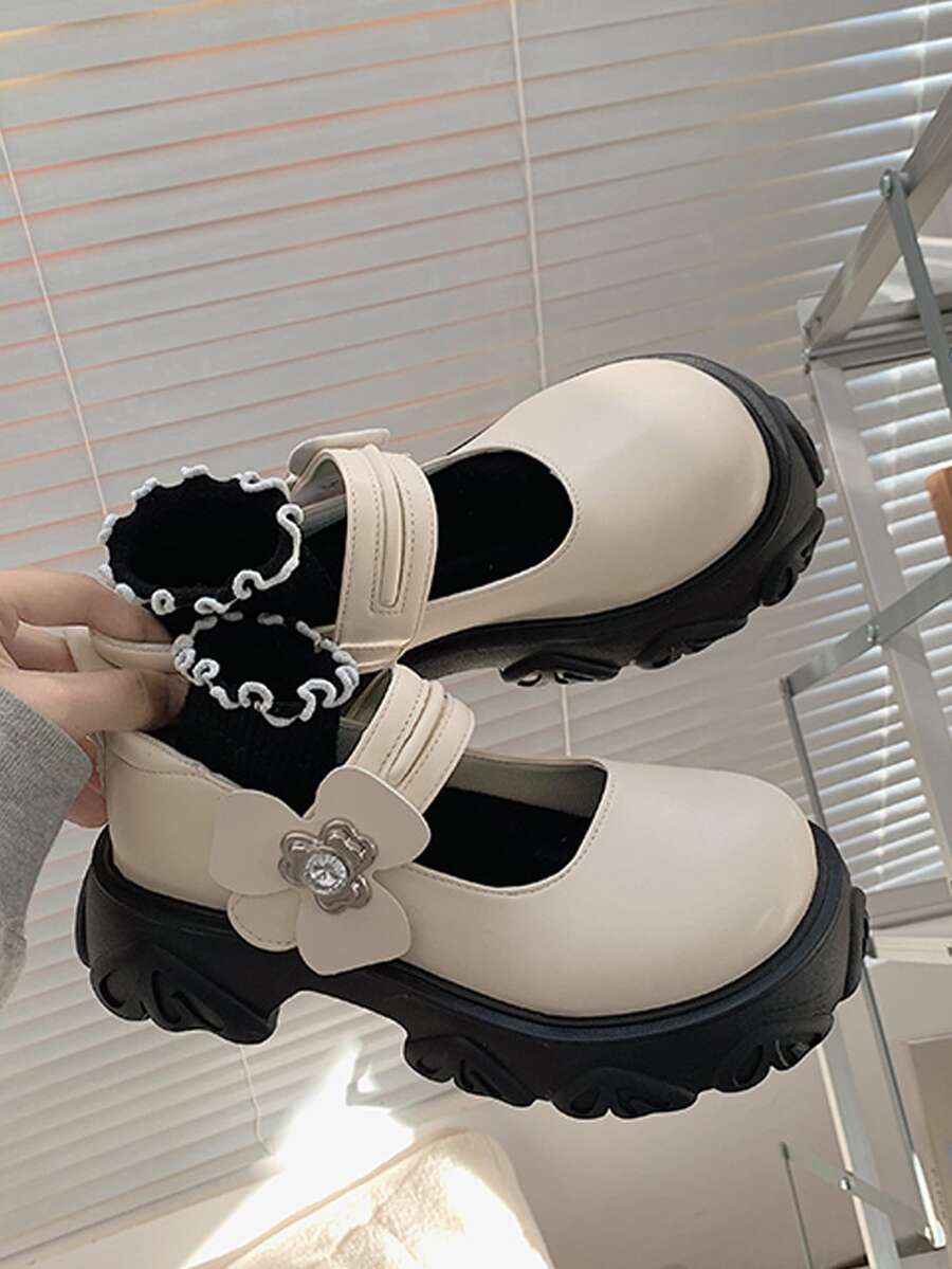 Femme Chaussures compensées à strass à fleur plate-forme babies à la mode extérieur