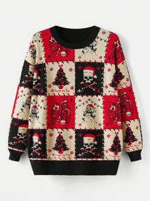 Pull De Noël Pour Femme Avec Motif Arbre De Noël Et Tête De