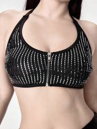 Brassière gothique punk sexy à zip frontal plissé pour femmes