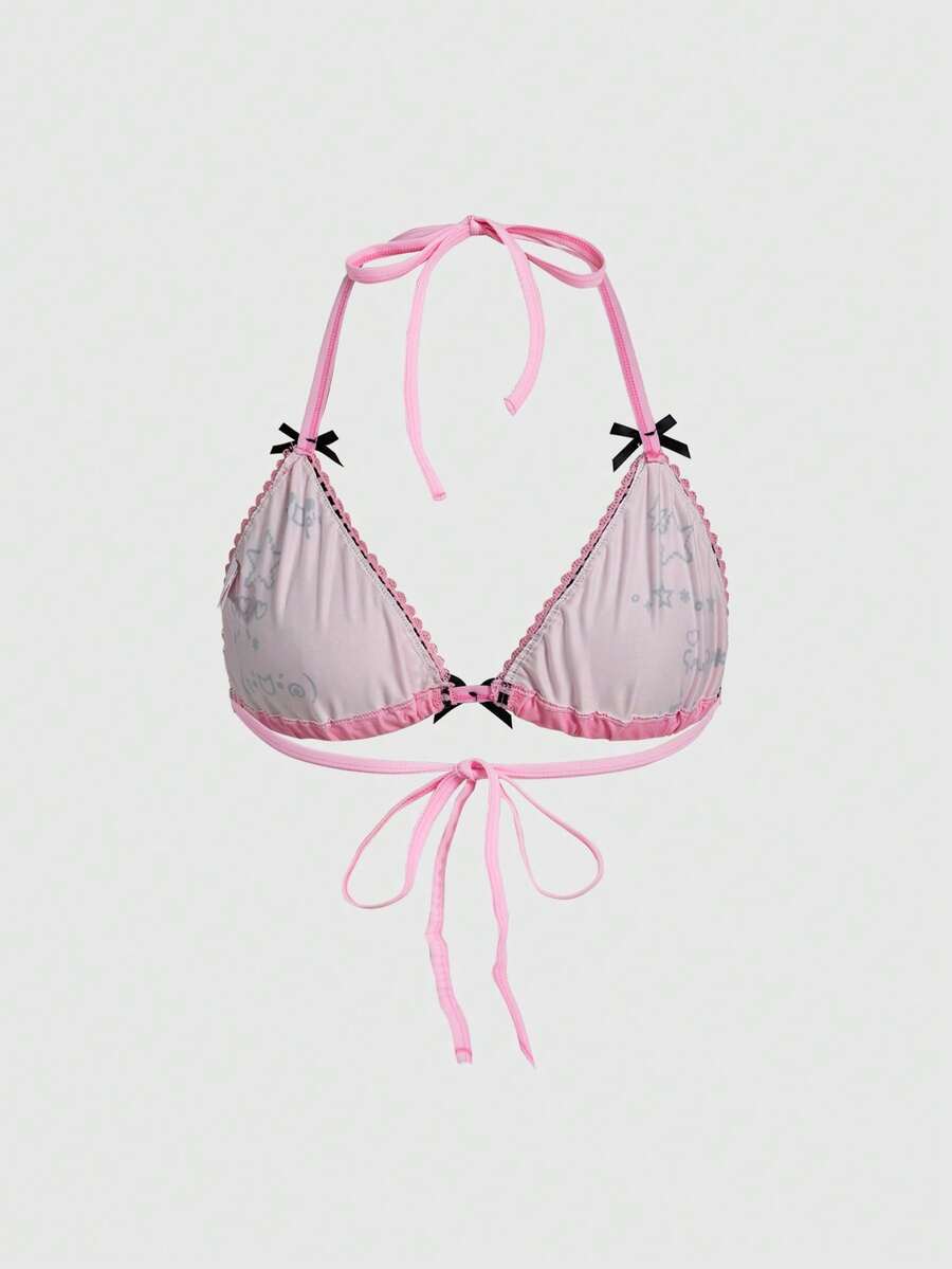 Soutien-gorge triangle à nœud papillon kawaii mignon avec émoticons pour femmes