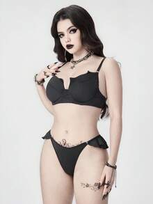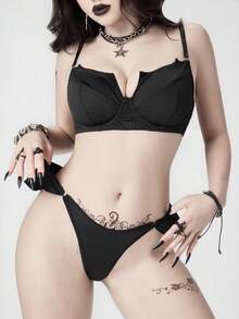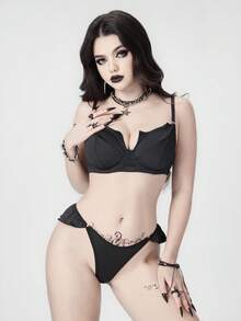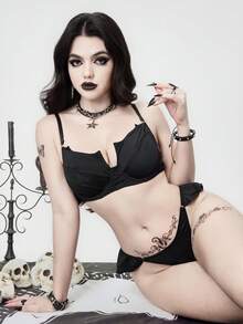 Ensemble de lingerie avec soutien-gorge à armatures et culotte à volants avec motif de chat gothique pour femmes