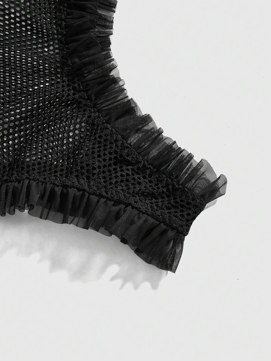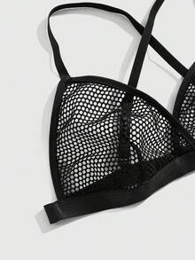 Goth Ensemble de lingerie sexy pour femmes avec soutien-gorge triangle à coupe filet croisé et culotte