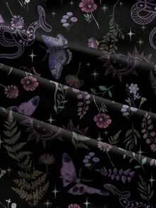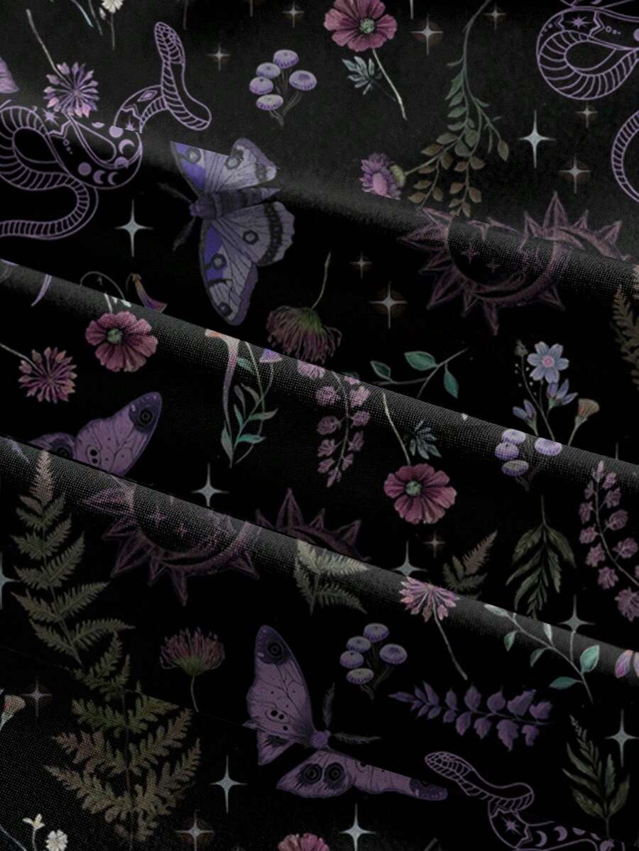 Pantalon ample à jambes larges avec imprimé tout-sur-tout de femmes gothiques, mystérieuses, sorcières, papillons, plantes, serpents, soleil, lune et étoiles