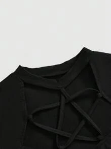 T-shirt moulant à lacets gothique pour femmes avec étoile à cinq branches ajourée, été