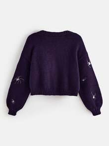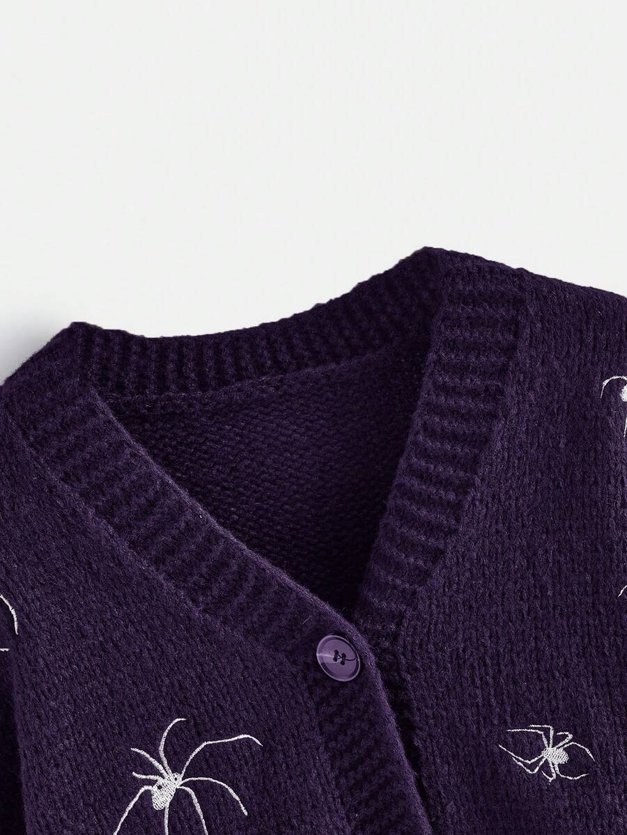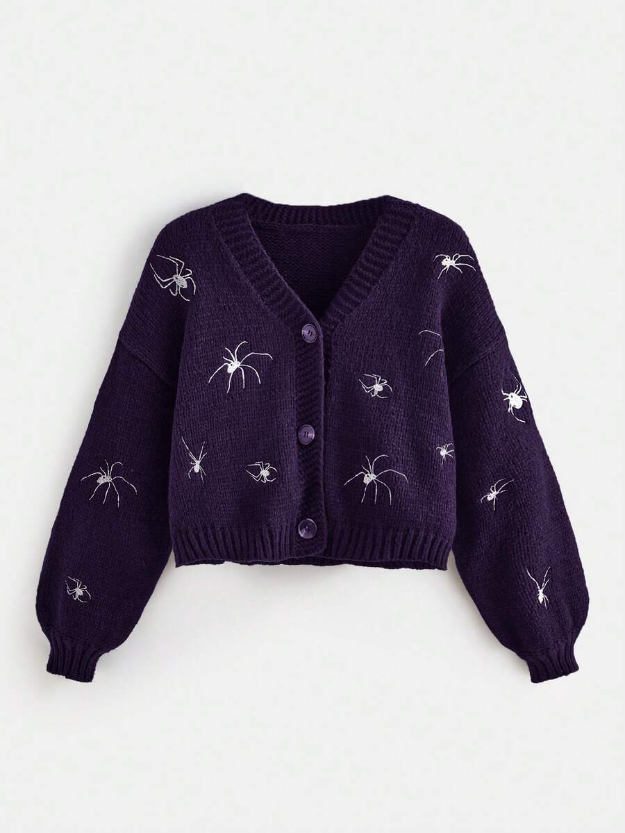 Cardigan gothique pour femmes avec broderie d'araignée, épaules tombantes et manches longues, pour l'automne/l'hiver