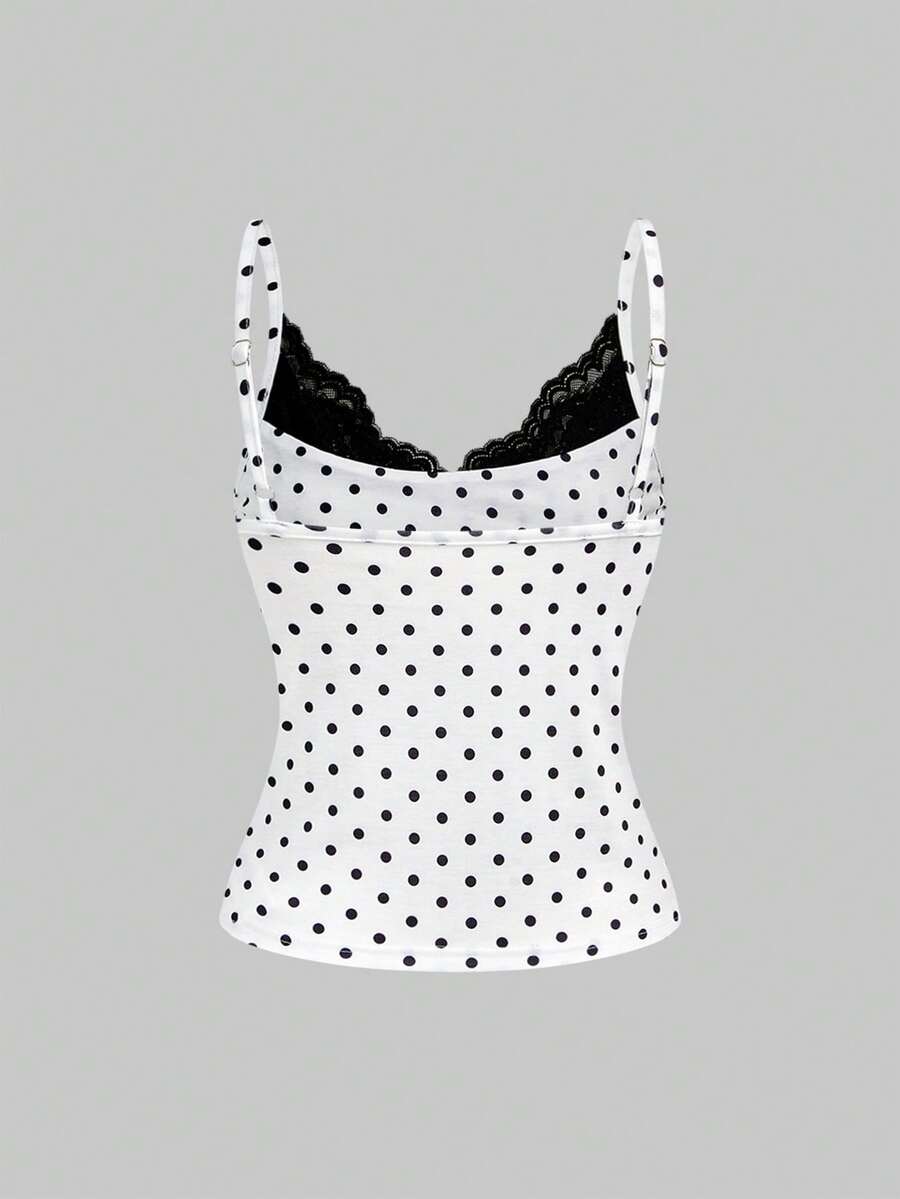 Débardeur moderne à col en U avec dentelle à pois pour femmes