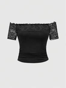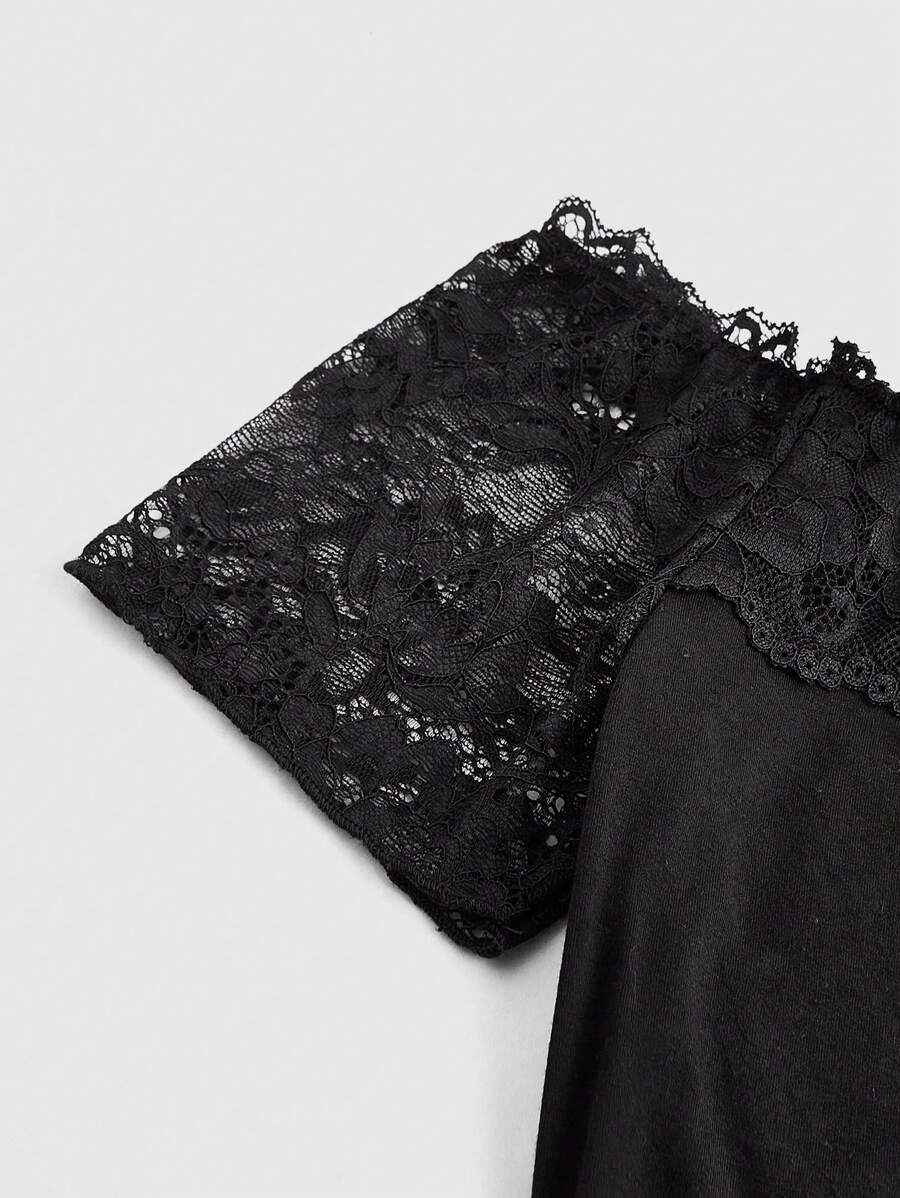 T-shirt pour femme avec épaule dénudée et dentelle décorative
