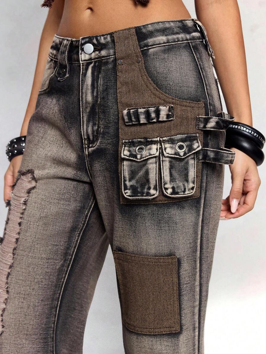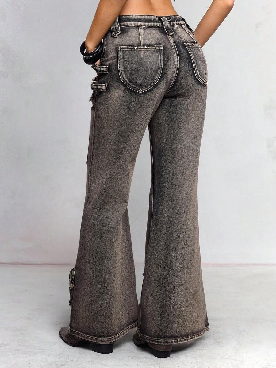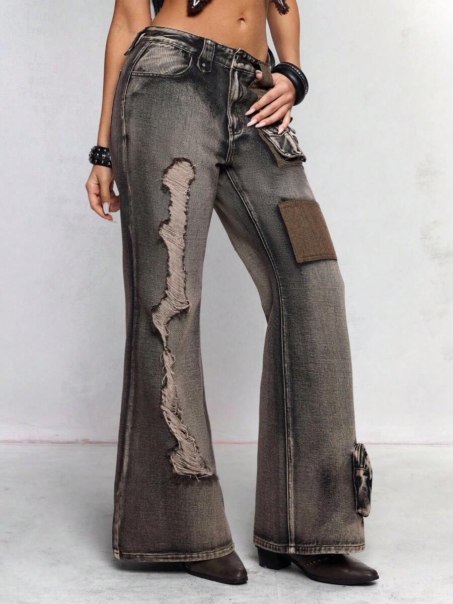 Jeans évasés à taille basse déchirés dans un style rétro hippie pour femmes