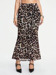 Jupe longue de queue de poisson à imprimé léopard pour les femmes, mode d'été