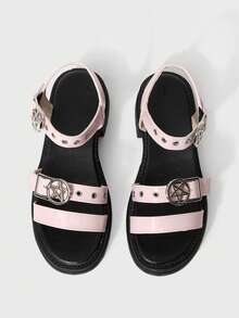 Sandales d'été femme à bout ouvert, style rock sombre, punk, gothique, romain. Sandales compensées à brides en forme d'étoile. Chaussures de printemps pour le printemps, Pâques, Halloween et Noël