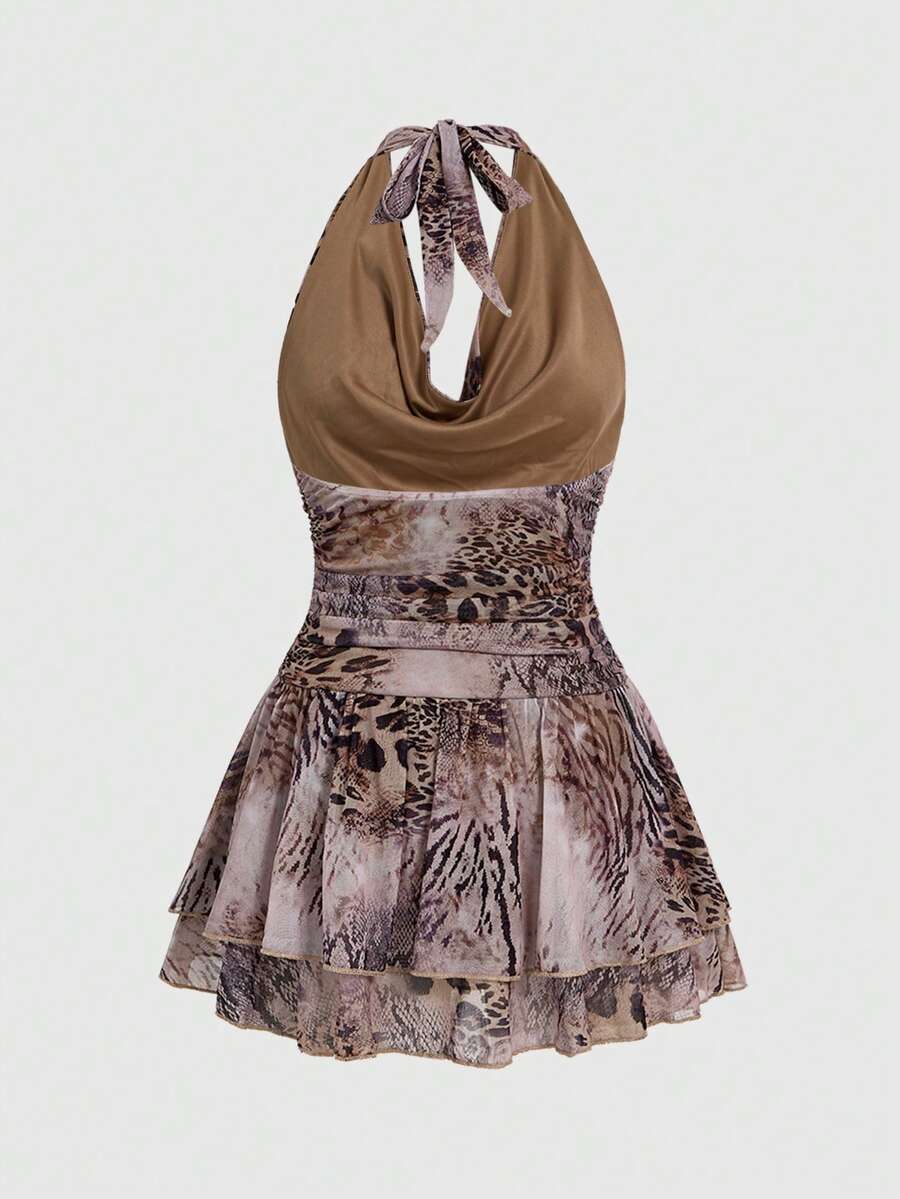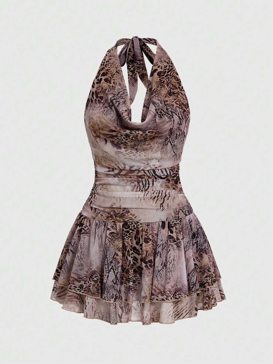 Y2K Robe mini sexy dos nu à imprimé animal