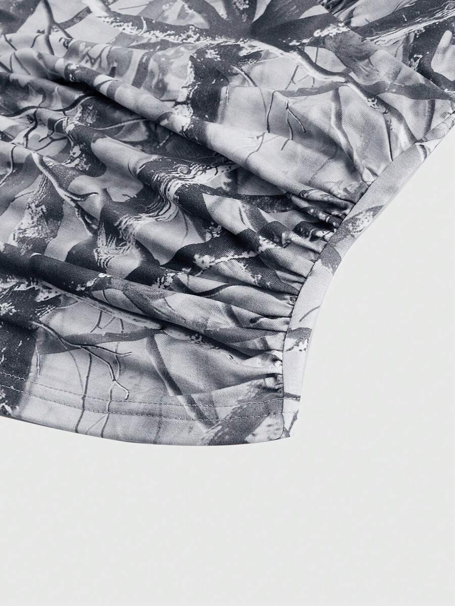 Débardeur crop top à imprimé camouflage de feuilles sèches avec bordure en dentelle, style Y2K baddie