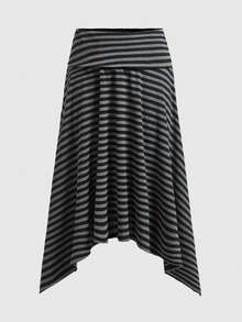 Jupe longue asymétrique style A-line, rayures noires et grises, style casual de base pour femmes