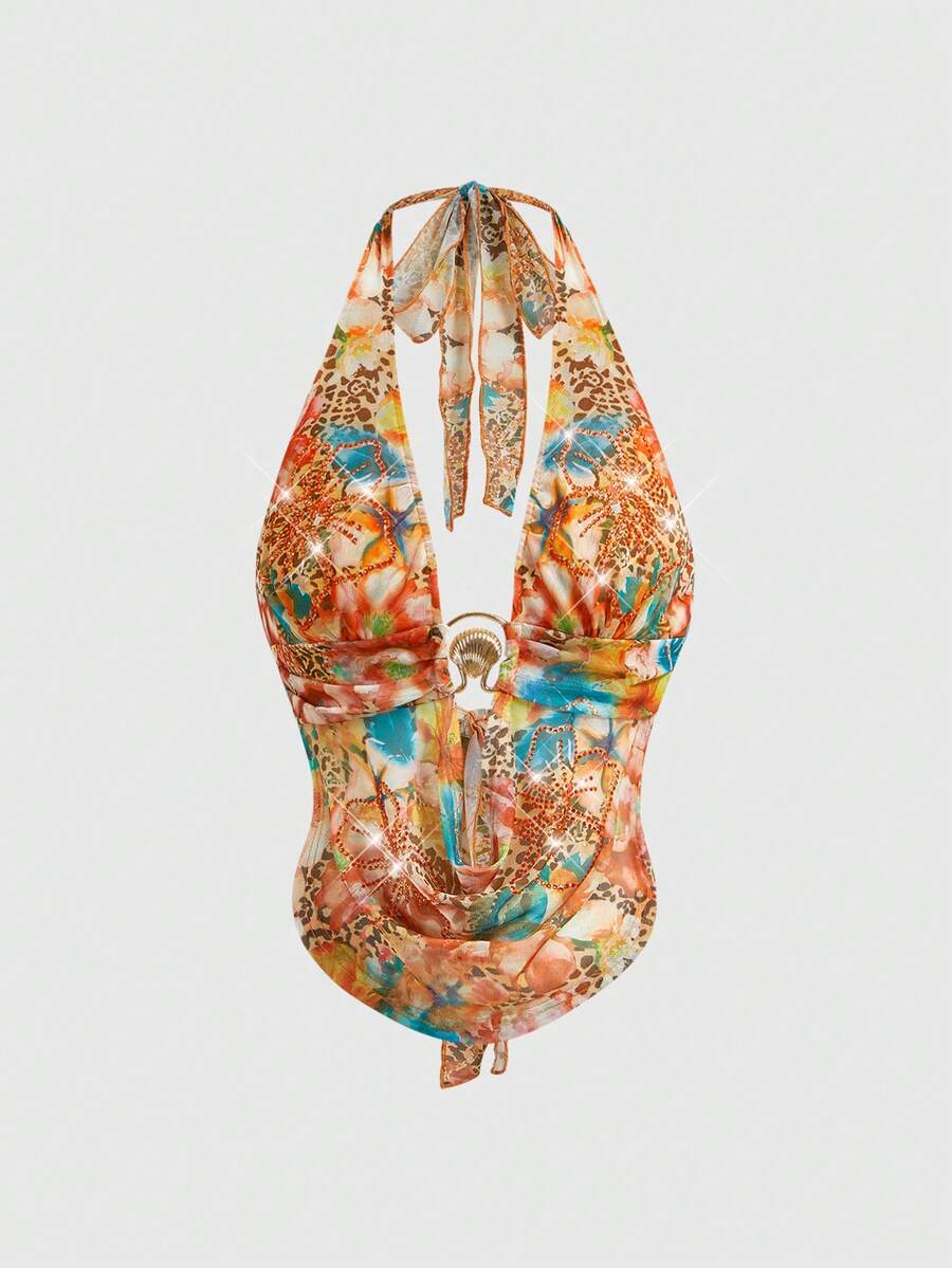 Débardeur rose orné de strass au décolleté drapé, style rétro Y2K sexy pour femmes