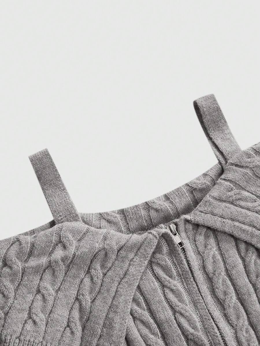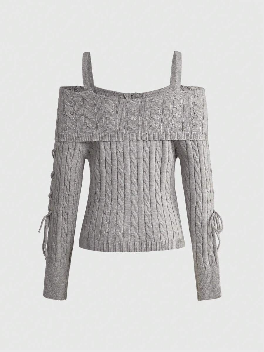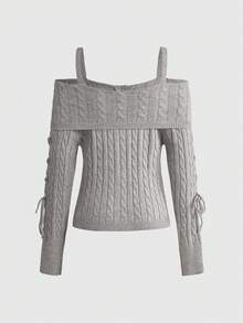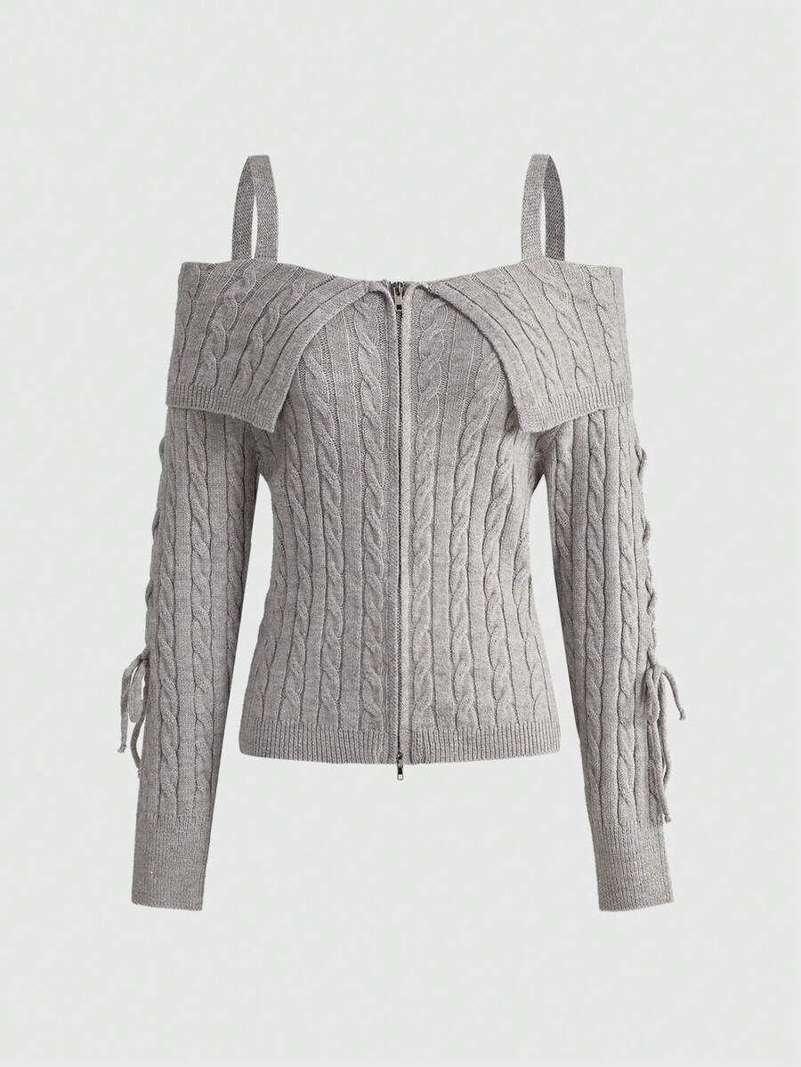 Cardigan côtelé ajusté style Y2K pour femmes avec col épaules dénudées et ceinture à la taille
