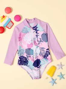 Maillot De Bain Pour Jeune Fille À Une Pièce Tropical Avant-zip