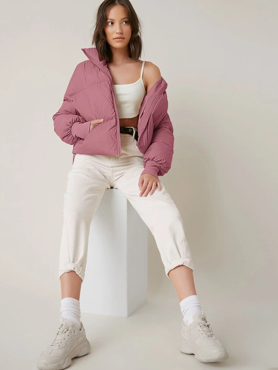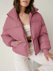Manteau matelassé chaud d'hiver à fermeture zippée pour femmes