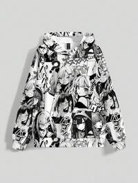 Anime Sweat-shirt à capuche gothique noir et blanc, style punk mignon, avec poche, grande taille