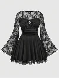 1 pièce Robe femme grande taille gothique sombre à l'épaule dégagée avec patchwork de maille forme lune