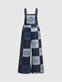 Hippie Plus Combinaison Salopette Imprimé Patchwork Ample (Sans Top)