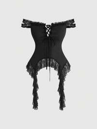 Top femme grande taille à manches évasées, avec empiècement en dentelle, style gothique romantique et sexy, épaules dénudées