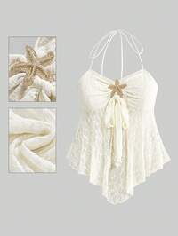 Tenue de plage rétro Y2K, Débardeur moulant à fente sexy avec décoration d'étoile de mer, grande taille
