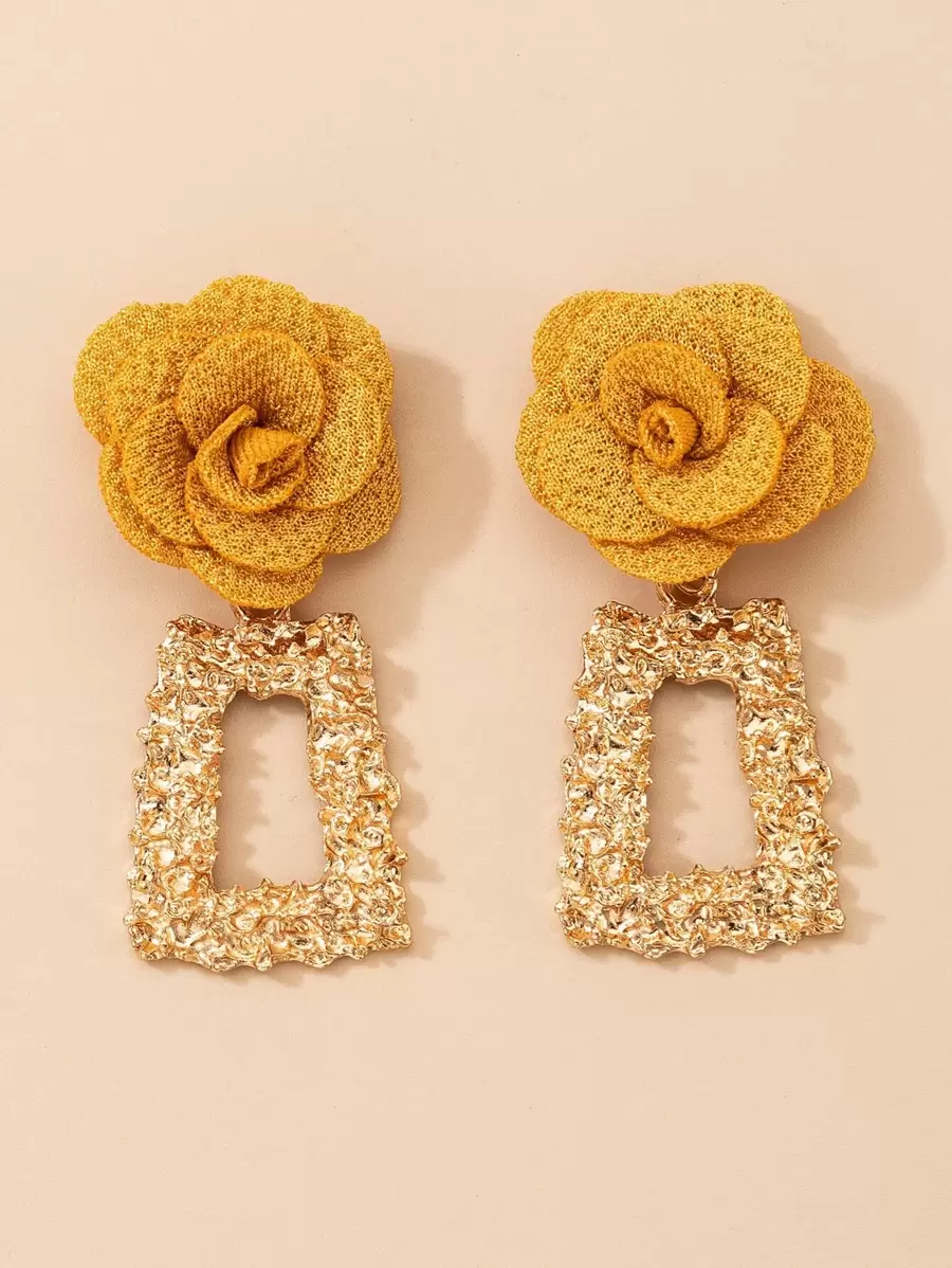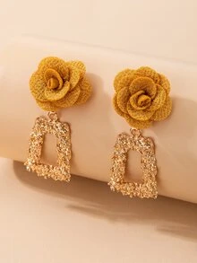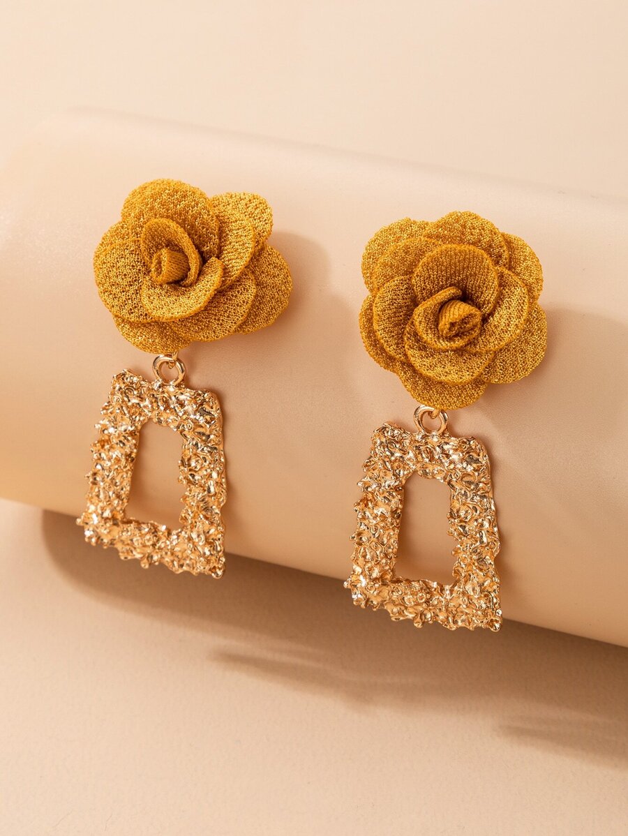 imoli Boucles d'oreilles pendantes en métal texturé décorées de fleurs, pour la Saint-Valentin