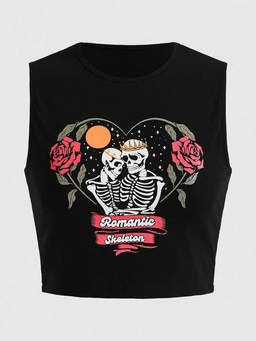 lockdsg Top Sans Manches Imprimé Fleuri Et Squelette