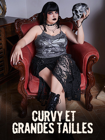 Goth Camisole en velours sombre et dentelle contrastée pour Halloween