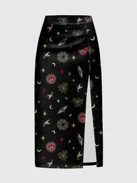 Goth Pantalon ample à jambes larges avec imprimé tout-sur-tout de femmes gothiques, mystérieuses, sorcières, papillons, plantes, serpents, soleil, lune et étoiles