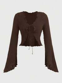 Hippie Blouse décontractée à manches évasées et nœud devant, couleur unie, automne